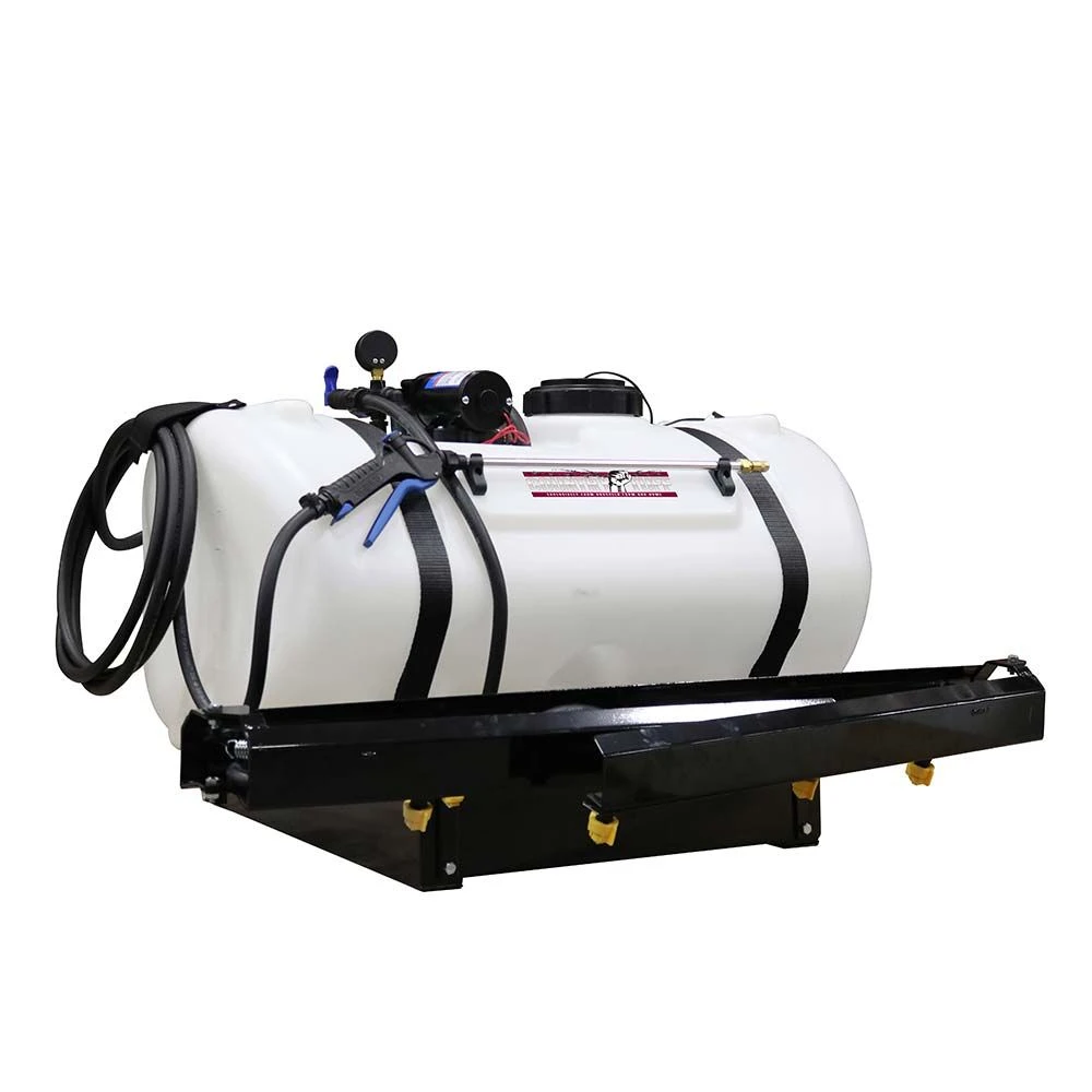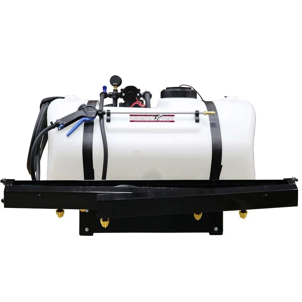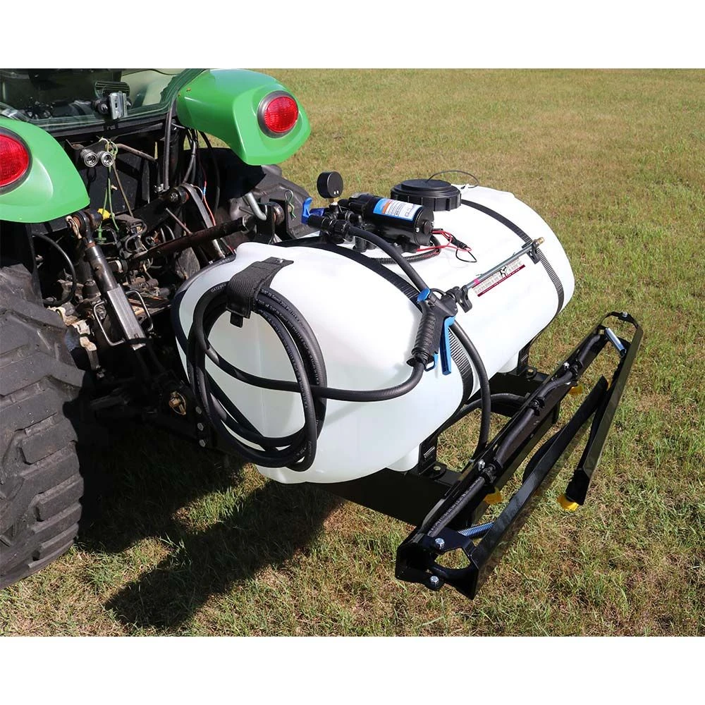 Get your tractor revved up for this one of a kind, heavy-duty Country Tuff 40 Gallon Deluxe 3-Point sprayer. Featuring a top-of-the-line pumping system that includes a robust Everflo 2.2GPM 12V on-demand diaphragm pump, pressure gauge, adjustable pressure regulator, and a shut-off valve that controls water flow to spray boom. In minutes, easily mount the heavy-duty all-steel frame to any category one tractor. Keep debris and chemical clumps from entering your pump with the easy to maintain quick attach inline strainer. Keep your 15 feet of hose from dragging and being damaged with the included hook and loop hose strap. Other features include thick tank walls for increased durability and a quick power connection with the included 12V wire harness. Approved for use with Round-Up® and other agricultural brand herbicides and insecticides. Backed by a two-year warranty on pump & components. Can be used with UTVs (Side-by-Side) after some minor modifications. Spot Spraying: When it comes time to spot spray, un-holster your deluxe spray gun and reach up to 25 feet vertically and 30 feet horizontally from the comfort of your seat. As applications change, quickly adjust the heavy-duty brass nozzle from a steady stream to a wide mist. Deluxe spray gun is field repairable and features a trigger lock to reduce hand fatigue on longer jobs. Broadcast Spraying: This 3-point sprayer features the premium, heavy duty SSBK-620 broadcast spray boom that has a 10-foot spray swath. Featuring quick attach, no-drip spray nozzles that prevent excessive chemical dripping after spraying. With fold-able wings, easily prevent damage from oncoming obstacles such as trees or fold wings in for more compact storage. Comes standard with six flat fan nozzles. Coverage: This 3-Point sprayer is designed to handle up to 4 acres* of coverage in one sitting, making it ideal for large spray applications with a category one tractor. *Acreage coverage is based on running spraying application at 30 PSI while maintaining speed at 5 MPH. #html-body [data-pb-style="621604460A7F7"]{justify-content: flex-start; display: flex; flex-direction: column; background-position: left top; background-size: cover; background-repeat: no-repeat; background-attachment: scroll; border-style: none; border-width: 1px; border-radius: 0px; margin: 0px 0px 10px; padding: 10px;}#html-body [data-pb-style="621604460A817"]{border-style: none; border-width: 1px; border-radius: 0px; margin: 0px; padding: 0px;}