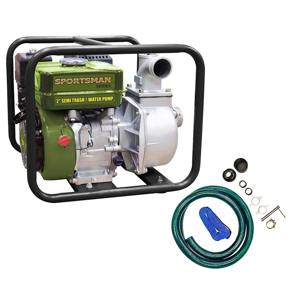 Easily removes water from a flooded basement or drain your fishpond with the Sportsman Series 2 Inch Gasoline Semi-Trash or Water Transfer Pump. Use it to pump water to boat docks and out of duck blinds. If you need to drain a small pool to repair a crack or liner leak, the 2 Inch Water Pump will make the job go faster. This small but mighty Semi-Trash and Water Pump has a 7.0 horsepower gasoline motor with 2 inch discharge and input outlet that can move up to 9,000 gallons of water per hour. The Sportsman Series Water Pump is great to have on hand for emergencies or jobs around the house and farm. Drain a flooded basement or empty a pool or pond, ideal for emergencies or general home and garden use.
